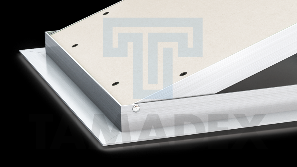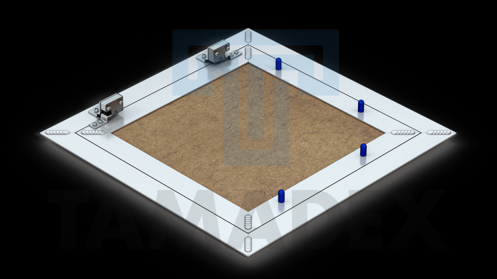 Dvířka jsou vyráběná z hliníkových profilů, které jsou svařovány do venkovního a vnitřního rámu. Kompletní sestava je spojena pomocí pevného pantu a umožňuje tak otevírání křídla dvířek v případě potřeby. Ve standardním provedení se tento model vyrábí v tloušťce 25 mm (2x 12,5 mm) s bílou, nebo zelenou deskou, upevněnou do vnitřního rámu pomocí samovrtných šroubů.
