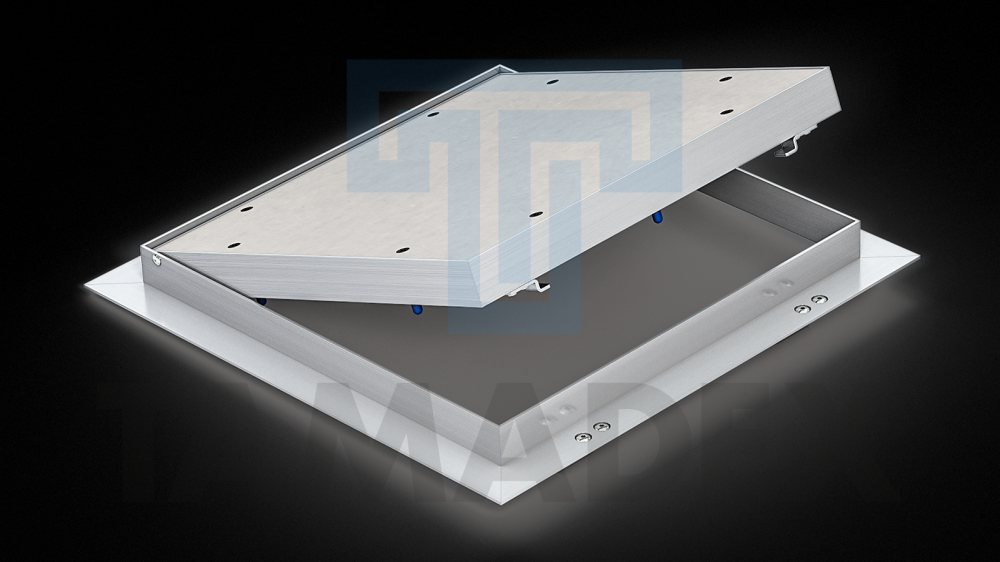 Dvířka jsou vyráběná z hliníkových profilů, které jsou svařovány do venkovního a vnitřního rámu. Kompletní sestava je spojena pomocí pevného pantu a umožňuje tak otevírání křídla dvířek v případě potřeby
